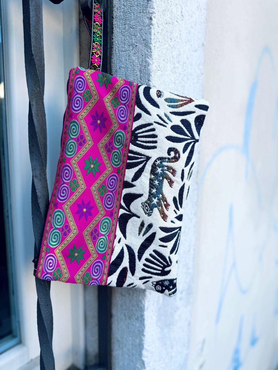Un piccolo atto di ribellione tropicale: ogni borsa, fatta a mano in Italia con rimanenze di tessuti d’arredo di lusso, è una creatura unica e un po’ selvaggia. Il PVC trasparente rivela trame e colori senza timidezze, mentre la struttura è resistente e pronta a seguirti ovunque — dal party più chic alle avventure più tropical-punk.